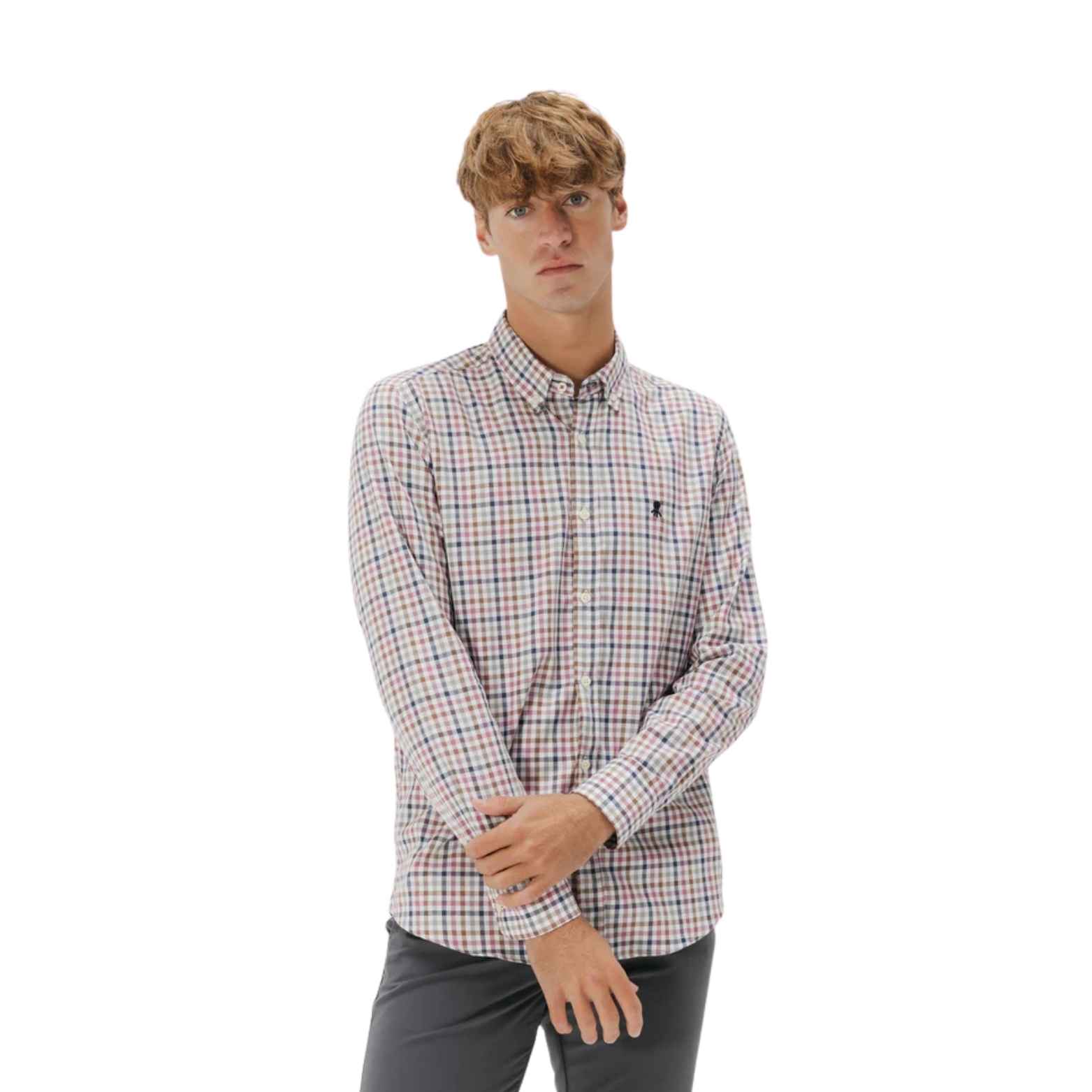 Camisa casual de franela cuadro confeccionada en 100% algodón en tonos rosa. Cuello botón. Detalle logo a tono en pecho.