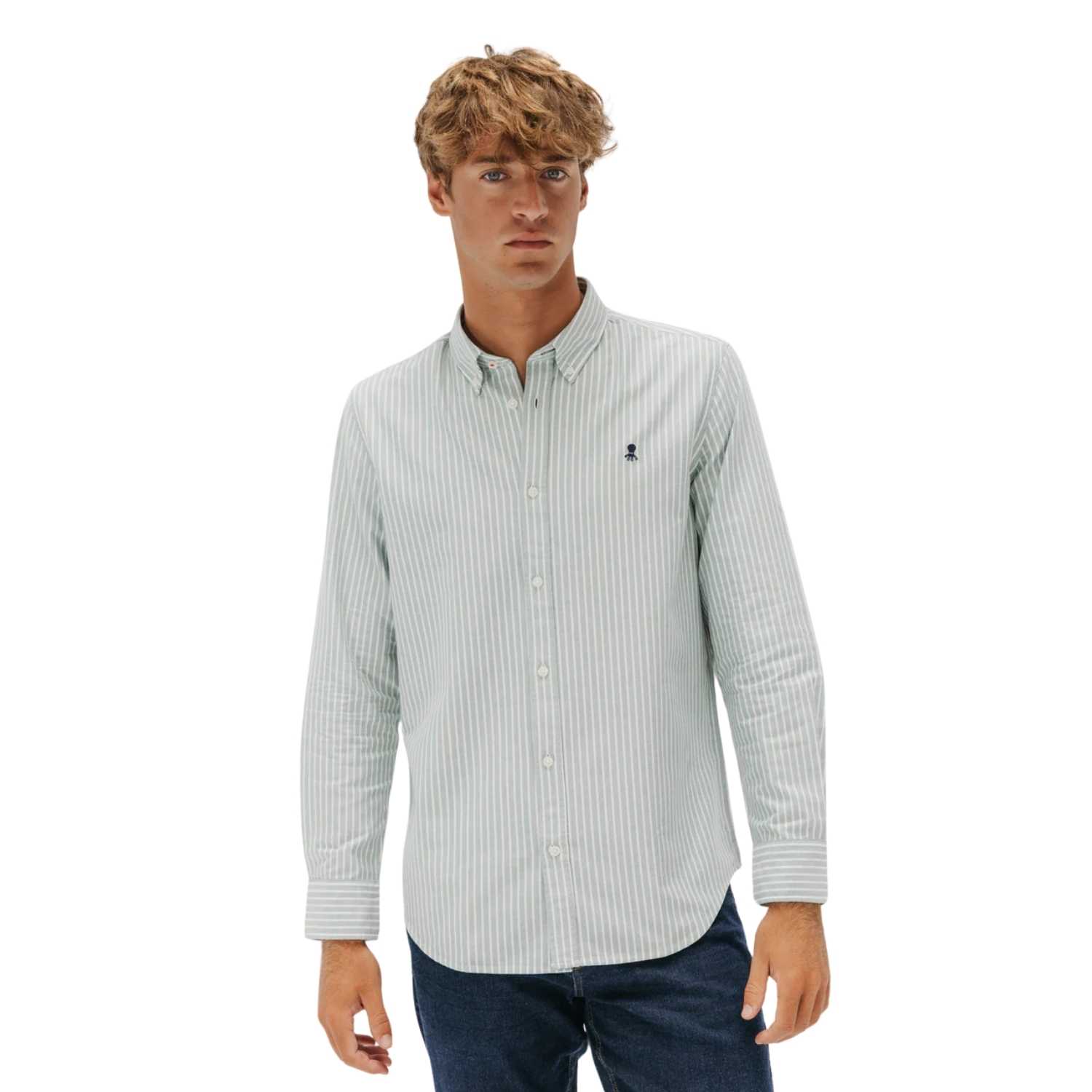 Camisa 3800 Oxford Raya Ancha Verde El Pulpo