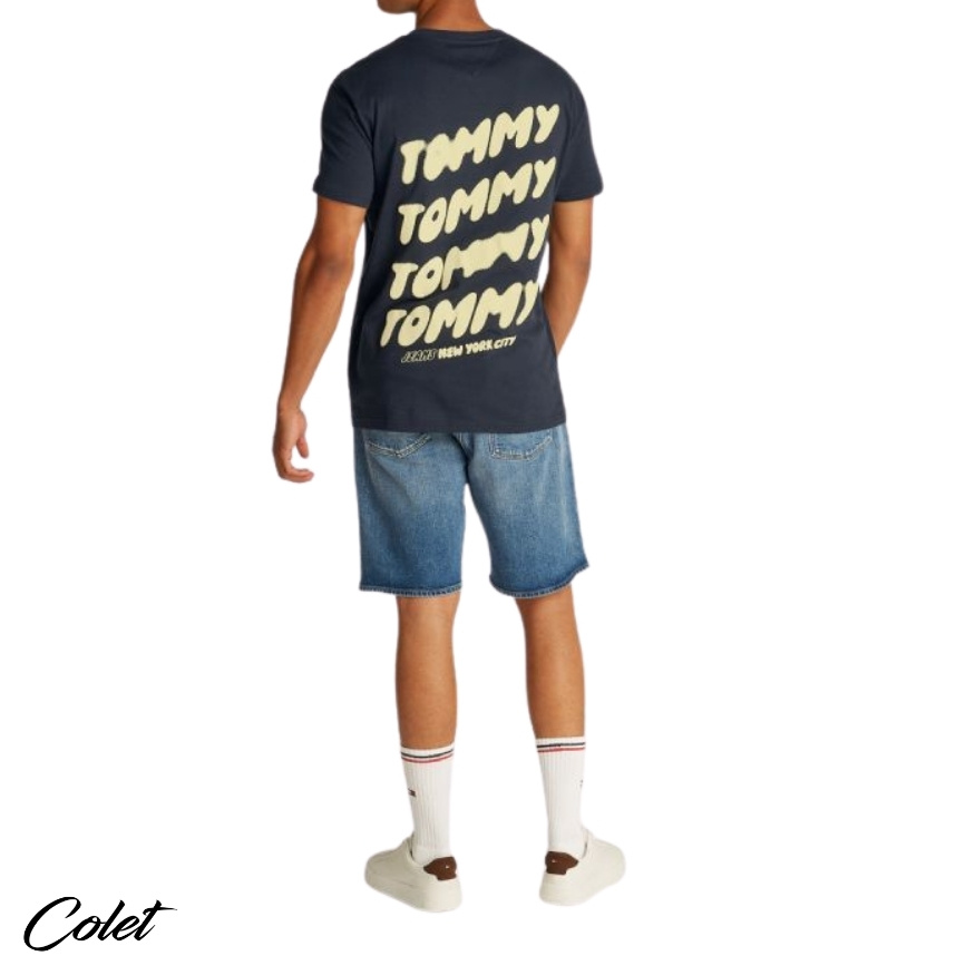 Camiseta 21864 Slim Azul Estampada Espalda de Tommy