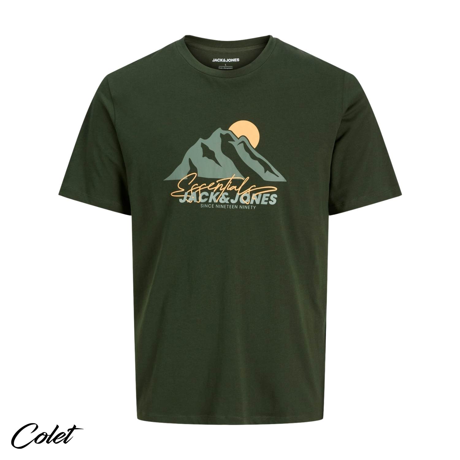 Camiseta verde de manga corta para hombre estampada. Camiseta 100% algodón.