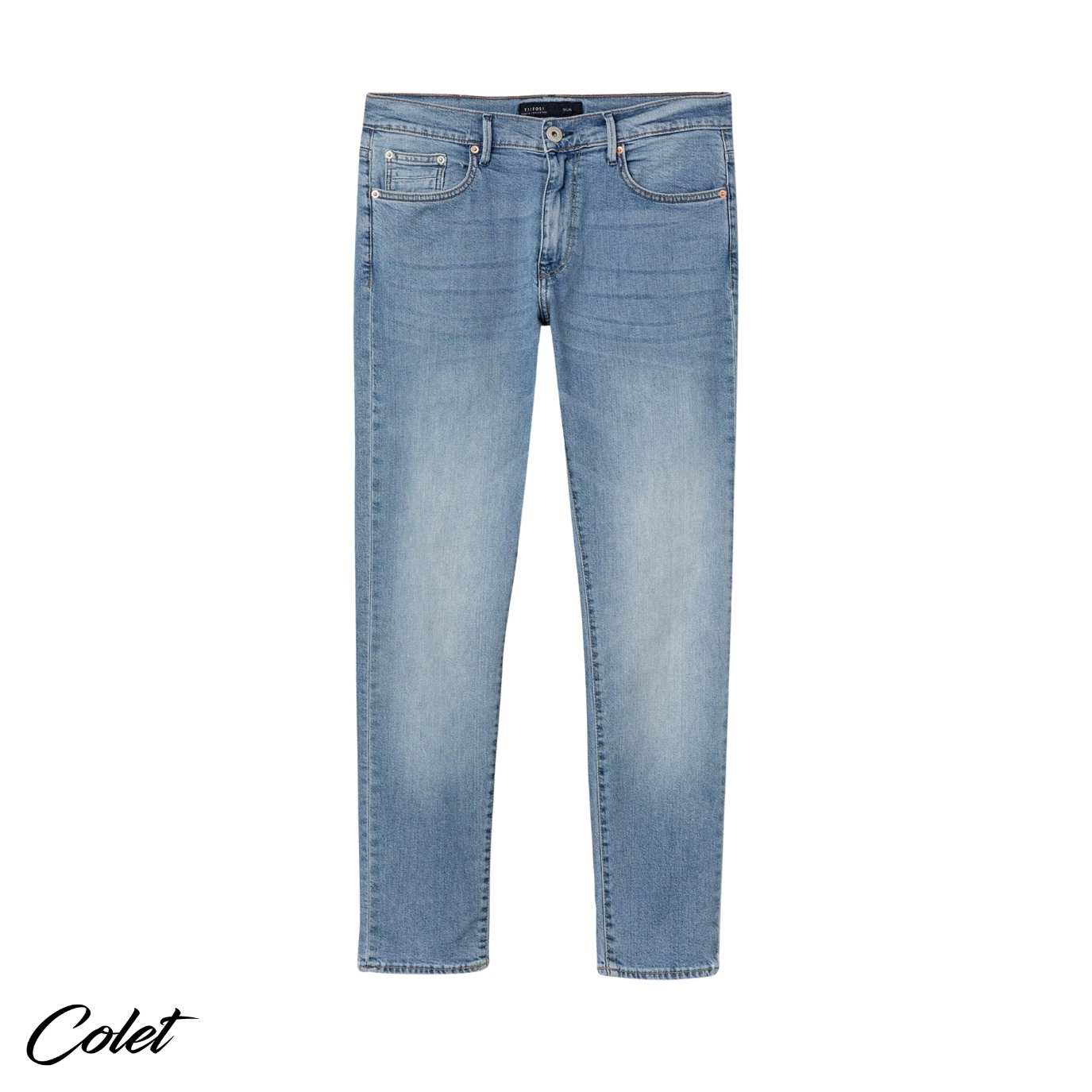 Jeans con cinco bolsillos. Cierre frontal con cremallera y botón metálico.