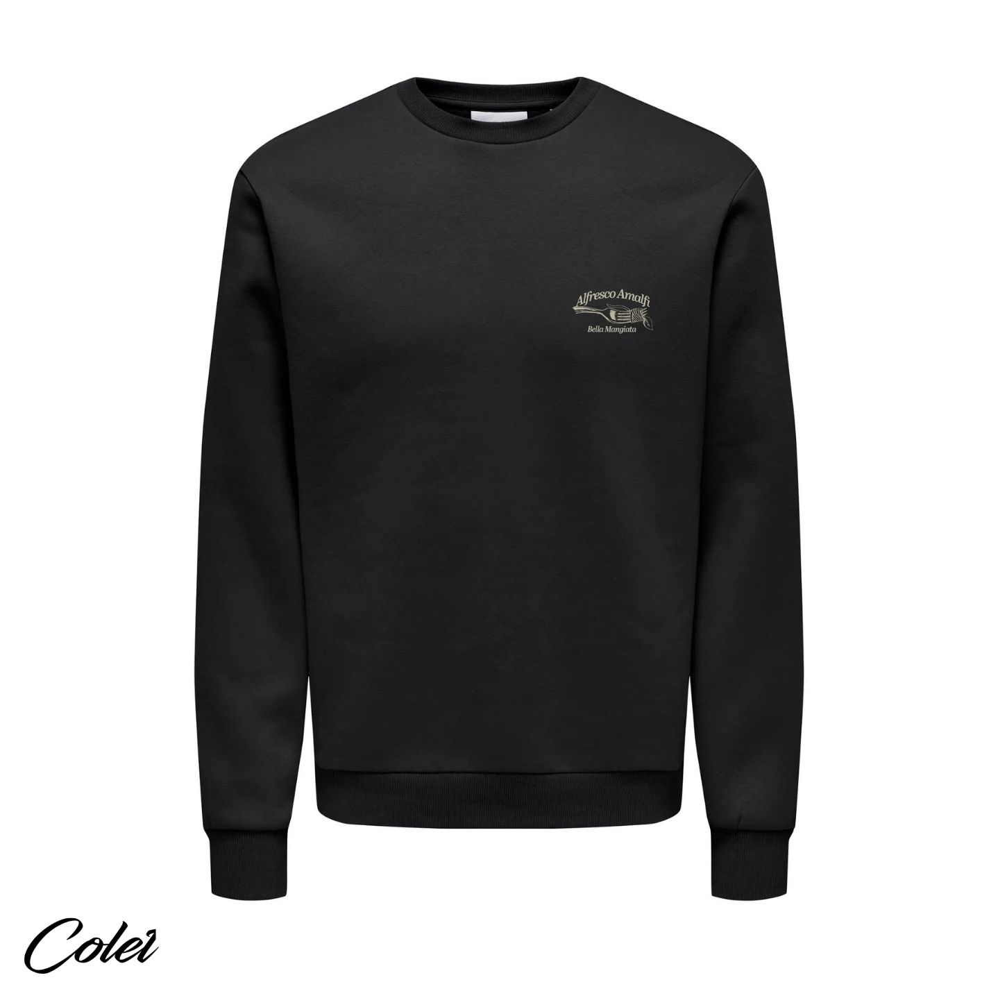 Sudadera negra estampada en espalda de corte Regular.