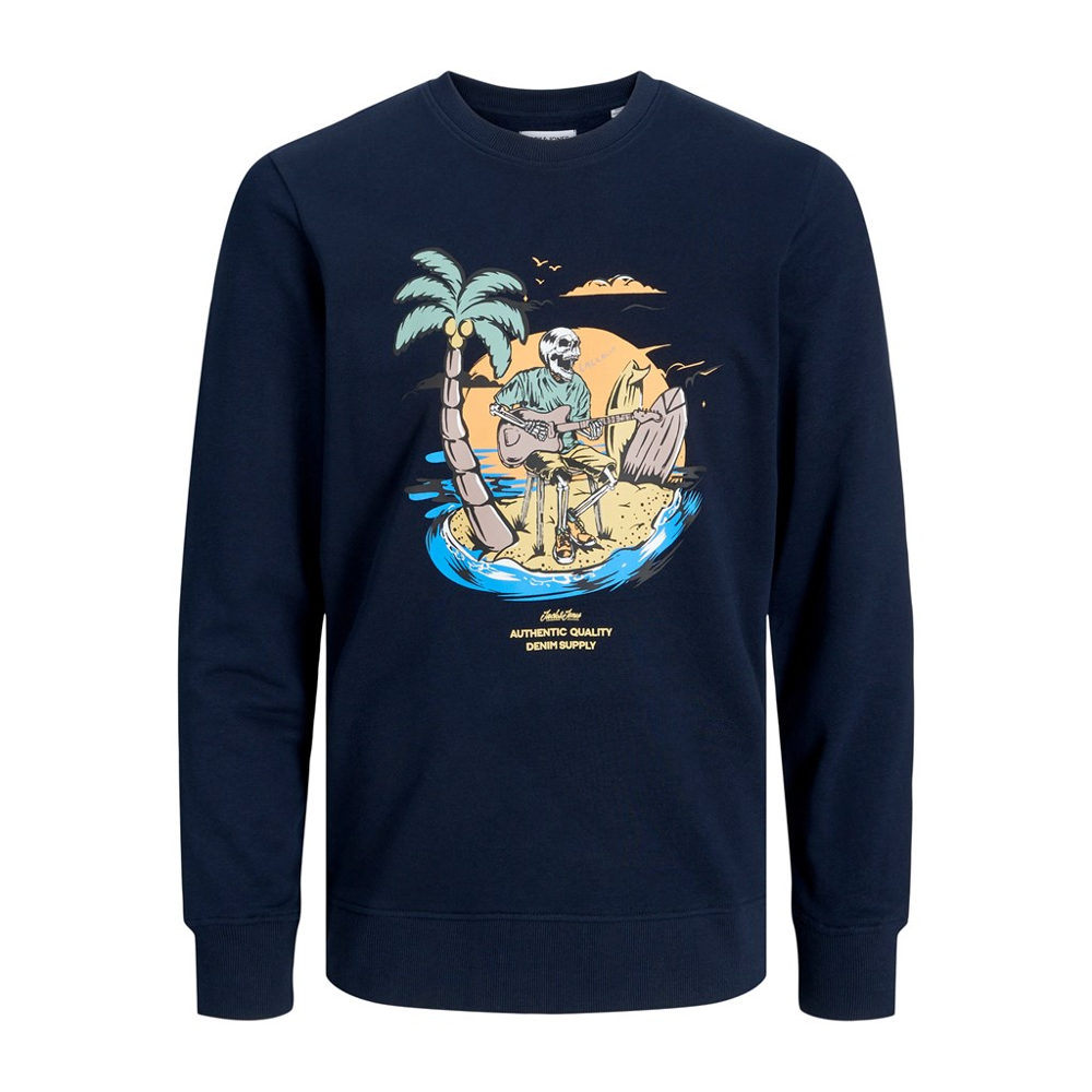Sudadera azul marino para hombre con estampado de calaveras de marca Jack&Jones