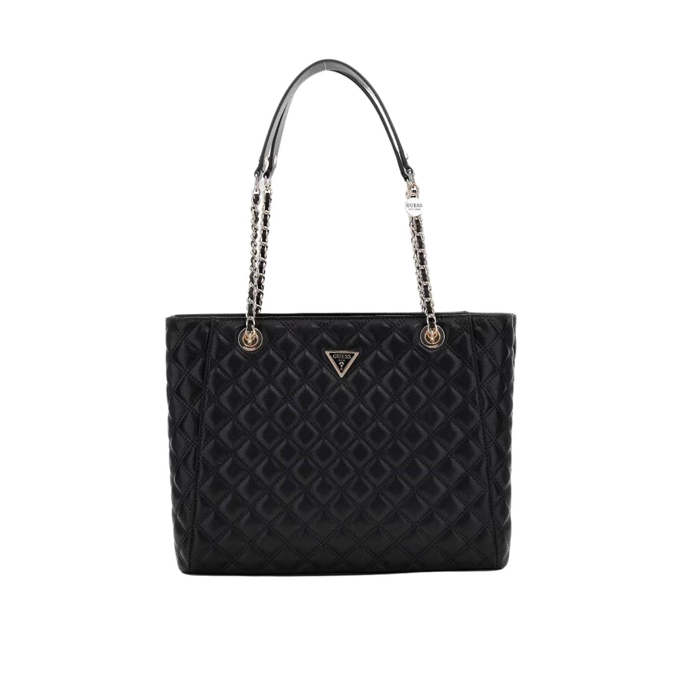 Bolso Nadira Status Tote Negro Brillo de Guess