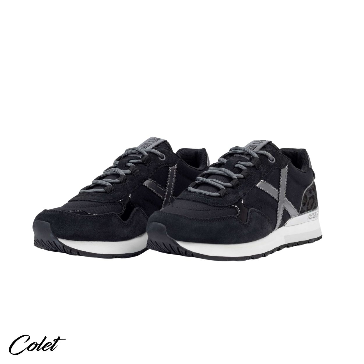 Zapatillas negras con detalles en gris plata.