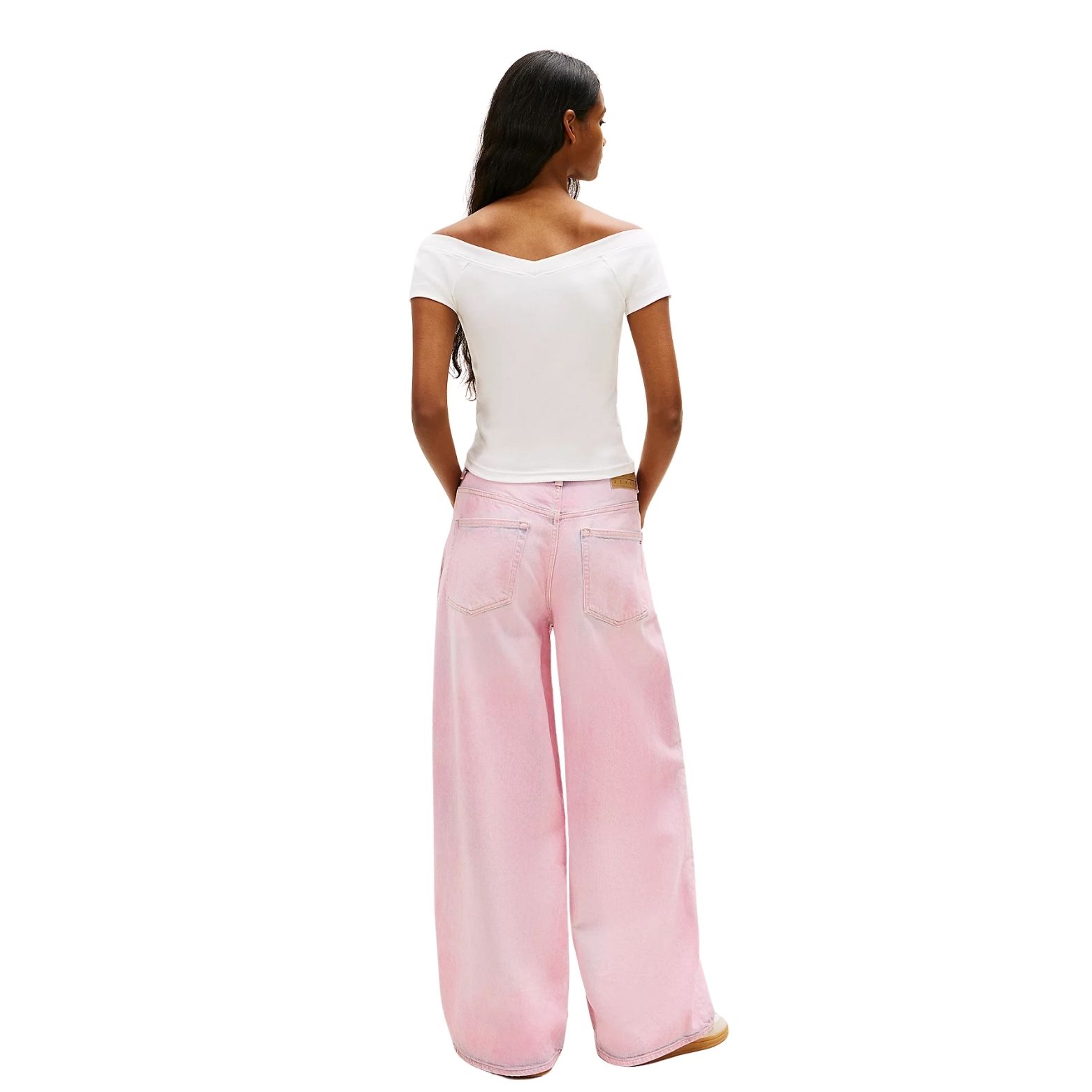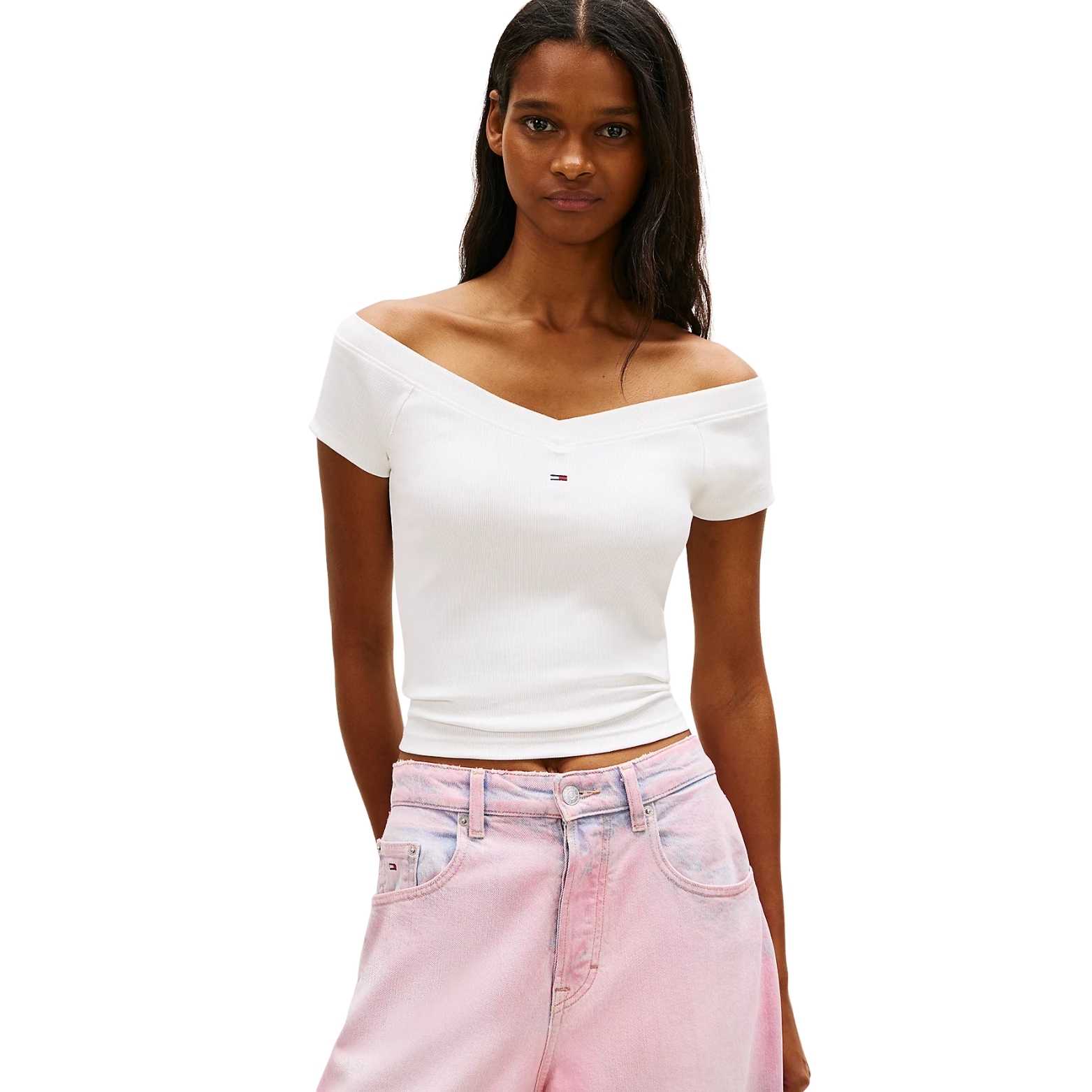 Camiseta Tommy Jeans de Mujer de Algodón Elástico con Escote Hombros Caídos – Ajuste Slim