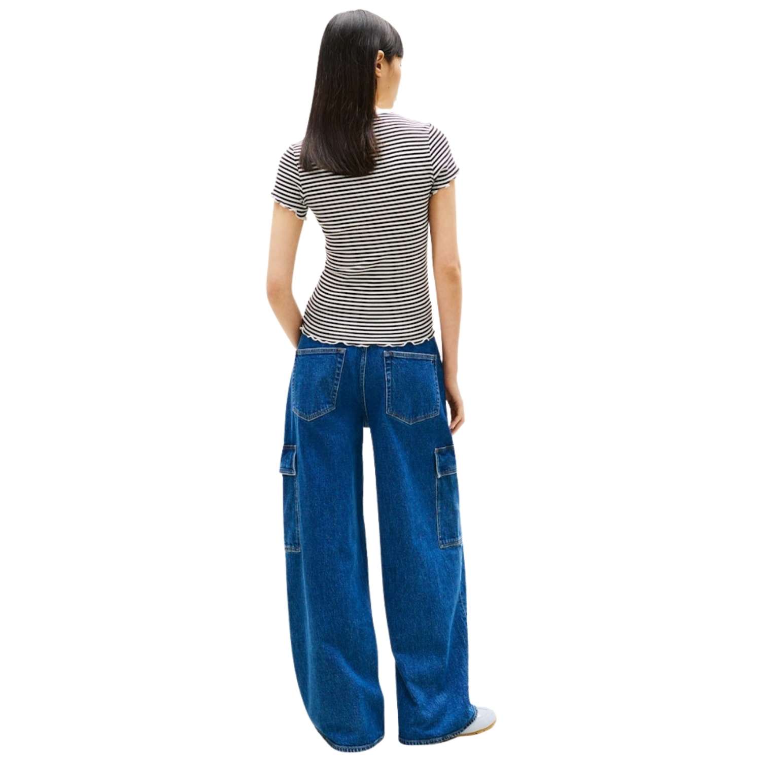 Descubre la Camiseta Tommy Jeans Slim Badge Rib estampada a rayas, una prenda femenina y versátil que combina estilo y comodidad. Confeccionada en tejido acanalado de alta calidad, ofrece un corte slim fit que se adapta a la silueta realzando la figura sin renunciar al confort.
