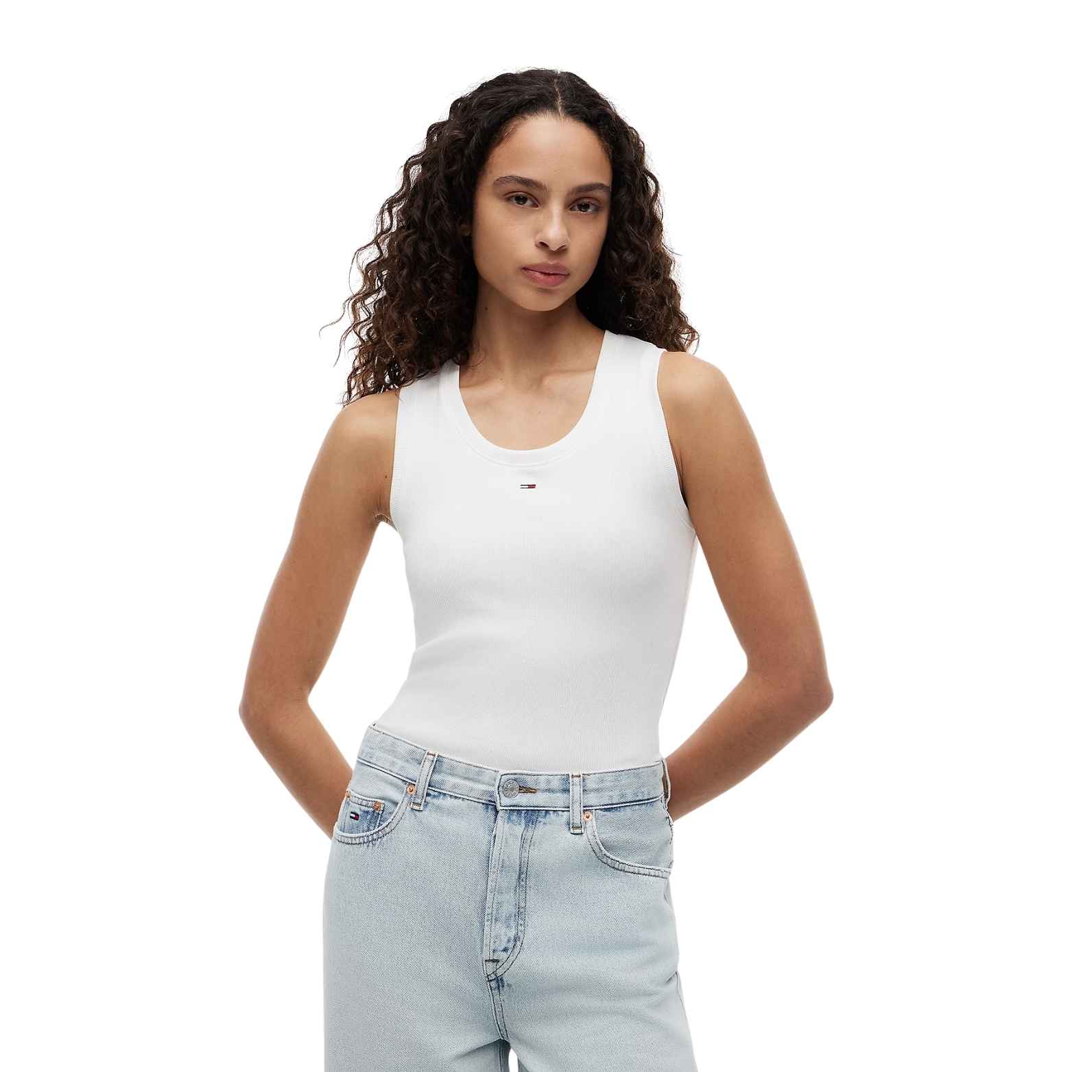 Dale un giro moderno a tus básicos con esta camiseta slim de algodón elástico acanalado de Tommy Jeans, inspirada en el estilo noventero que nunca pasa de moda. Su diseño ajustado realza la silueta, mientras que su tejido elástico garantiza comodidad durante todo el día.