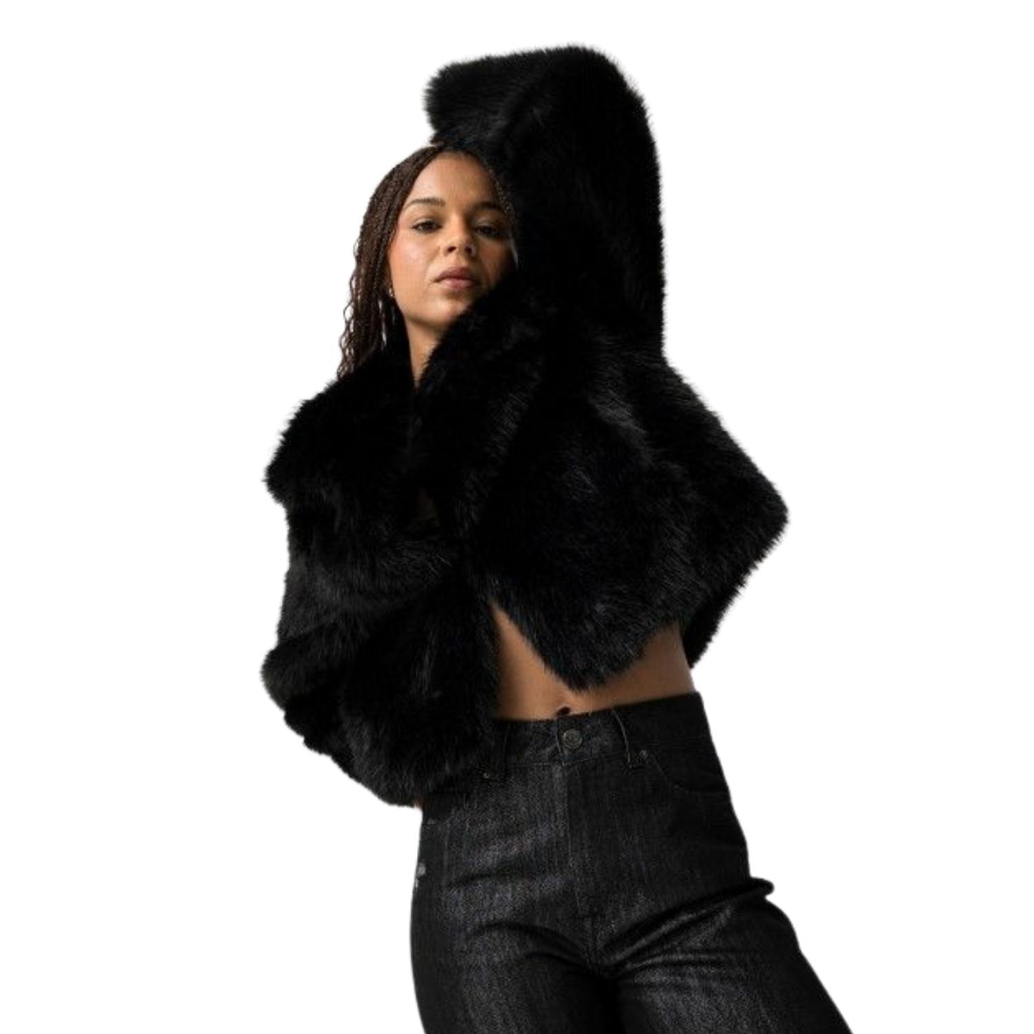 Aporta estilo y calidez a tus looks con esta chaqueta corta de pelo sintético. Diseñada con cuello de solapa y manga larga, combina elegancia y confort en una sola prenda. Cuenta con forro interior para mayor abrigo y bolsillos laterales funcionales. Confeccionada en 100% poliéster, es perfecta para completar tus outfits de otoño e invierno con un toque sofisticado.