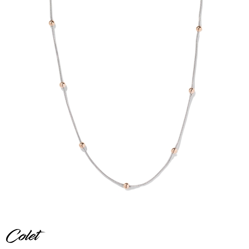 Collar de acero inoxidable bicolor con detalles redondeados. Cierre ajustable.