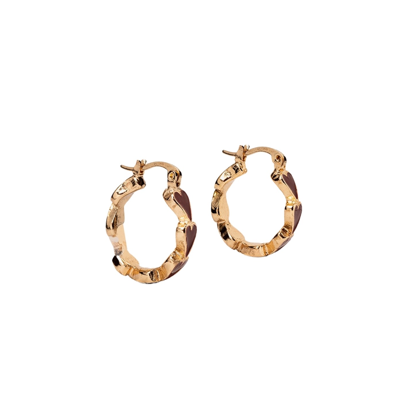 Pendientes aros en color oro con detalle de corazones en color granate.