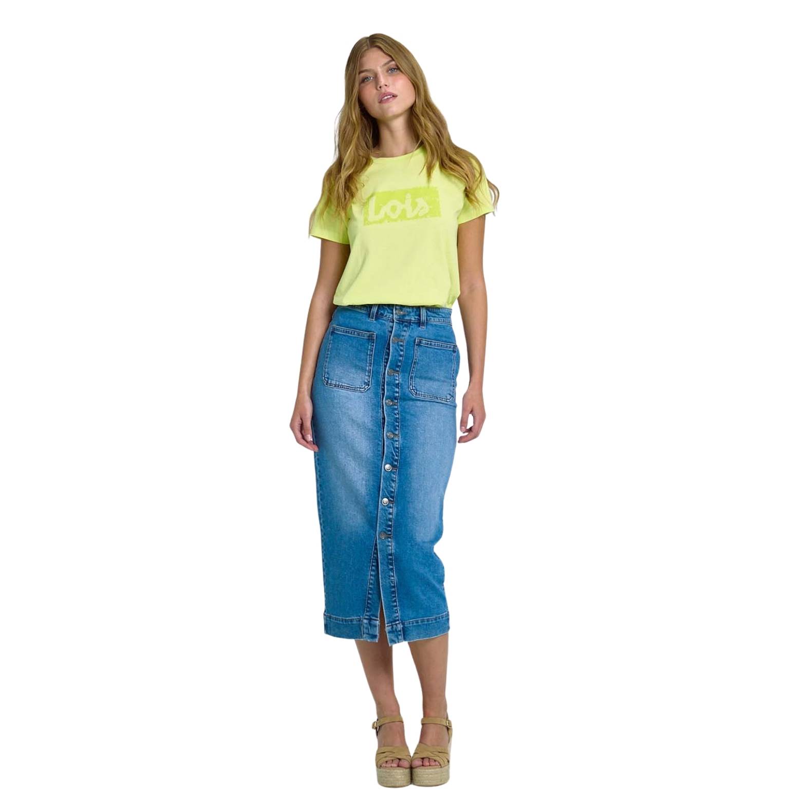La falda vaquera abotonada azul de Lois es una prenda imprescindible para un look denim actual, femenino y versátil. Su diseño con cierre frontal de botones y bolsillos plastrón delanteros aporta un estilo auténtico y favorecedor, ideal para el día a día.