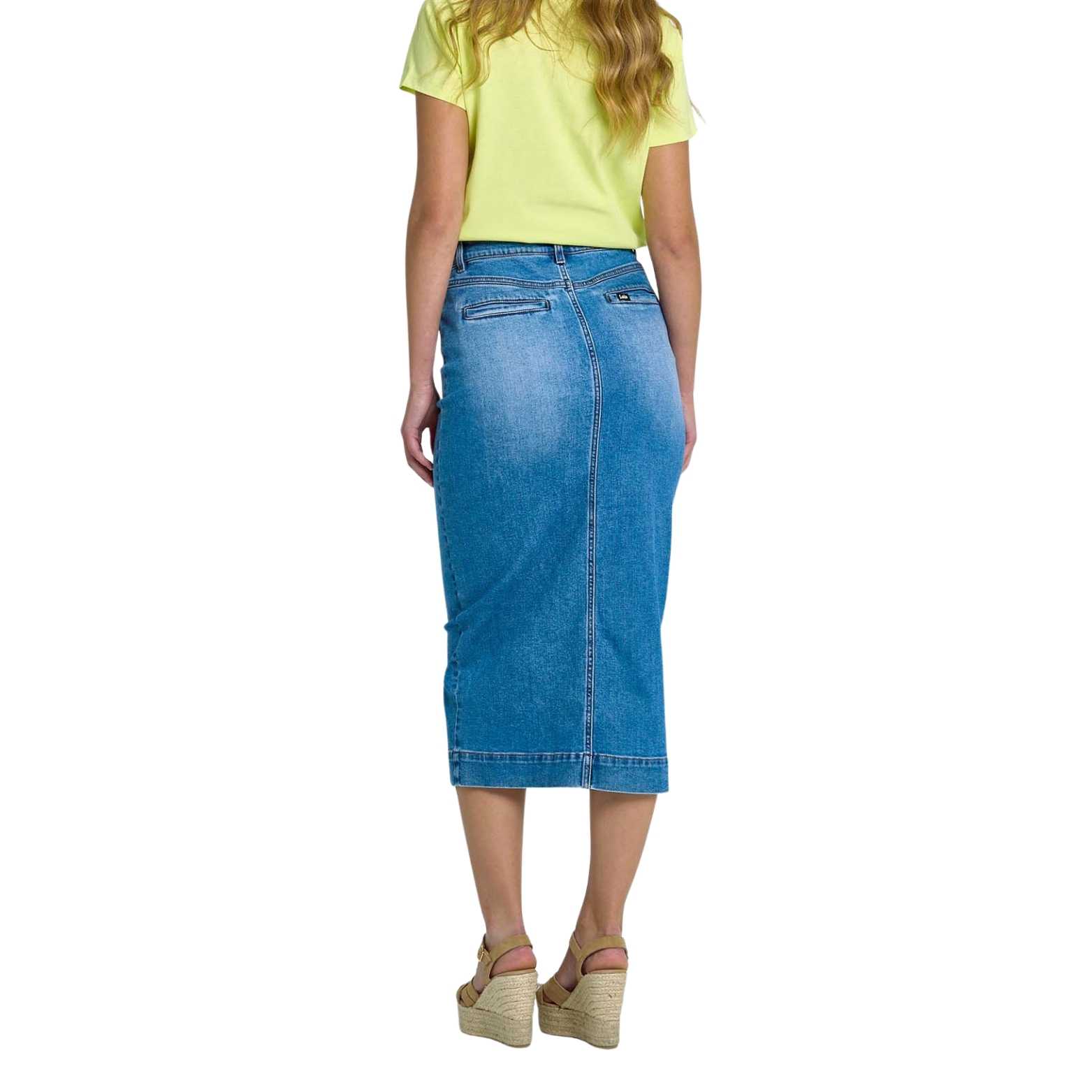 Confeccionada en tejido de alta calidad, esta falda denim elástica combina comodidad y ajuste perfecto gracias a su composición con elastano. Perfecta para combinar con camisetas, blusas o tops y crear outfits casuales o más arreglados.