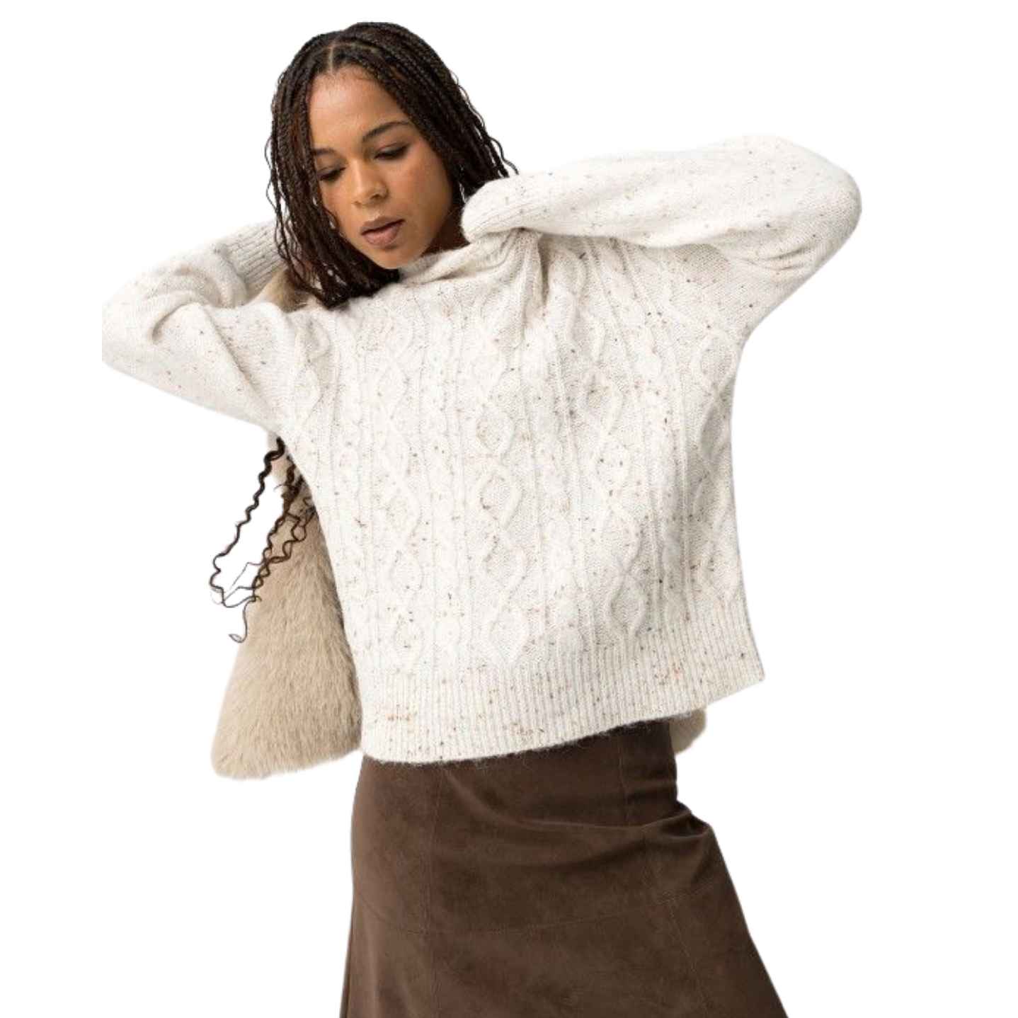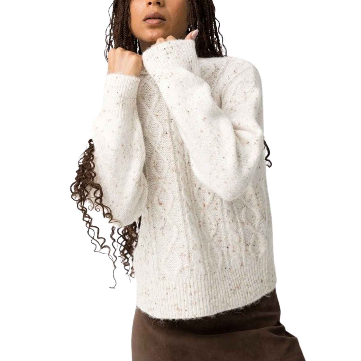 Jersey regular fit de punto trenzado, cuello alto, manga larga y acabados de canalé.