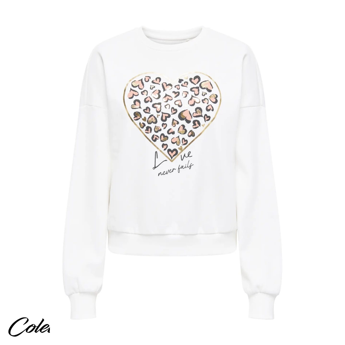 Sudadera blanca con interior afelpado para mujer. Estampado al frente.